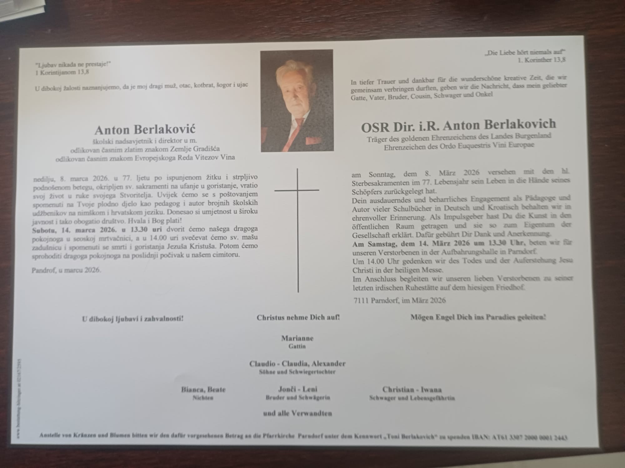 Wir müssen von unserem Ehrenpräsidenten Abschied nehmen: